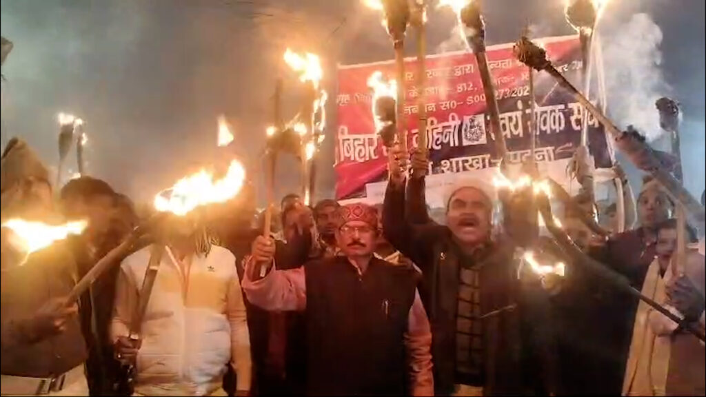 बिहार गृह रक्षा वाहिनी का सरकार के खिलाफ मोर्चा, 21 सूत्री मांगों को लेकर मशाल जुलूस और प्रदर्शन