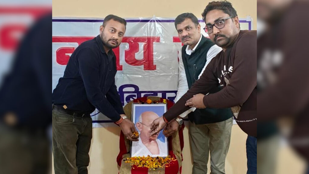 पटना – स्थानीय राजा बाजार, बेली रोड स्थित न्याय मंच, बिहार के कार्यालय में आज महात्मा गांधी की पुण्यतिथि पर मंच के नेताओं ने उन्हें श्रद्धांजलि अर्पित की।